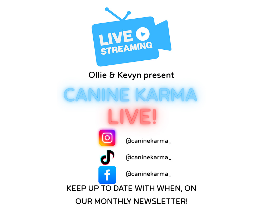 Ollie & Kevyn present Canine Karma live streaming on our social media channels: Instagram @caninekarma_Tiktok